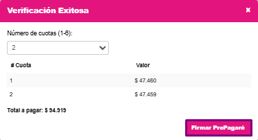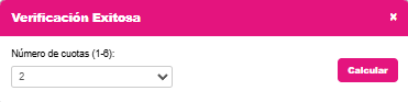 Una vez se complete la validación, la plataforma permitirá seleccionar el número de cuotas.