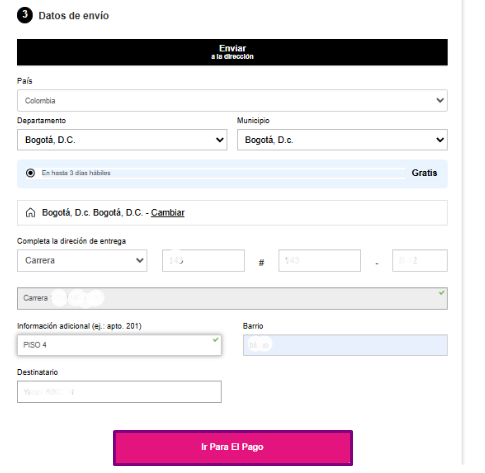 7️⃣ Confirmar datos de envío