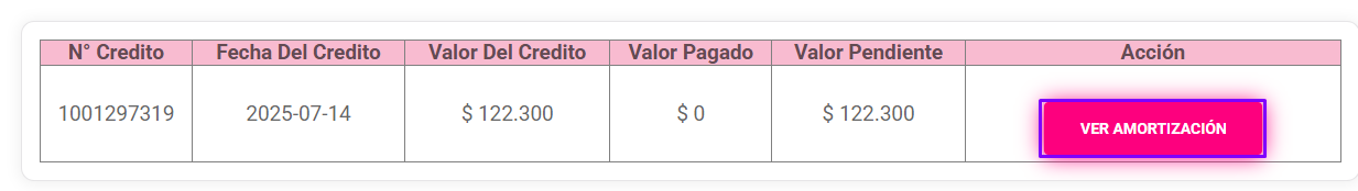 - Para consultar de manera más detallada el estado de cuenta por cuotas, se debe dar clic derecho en Ver amortización 📊.