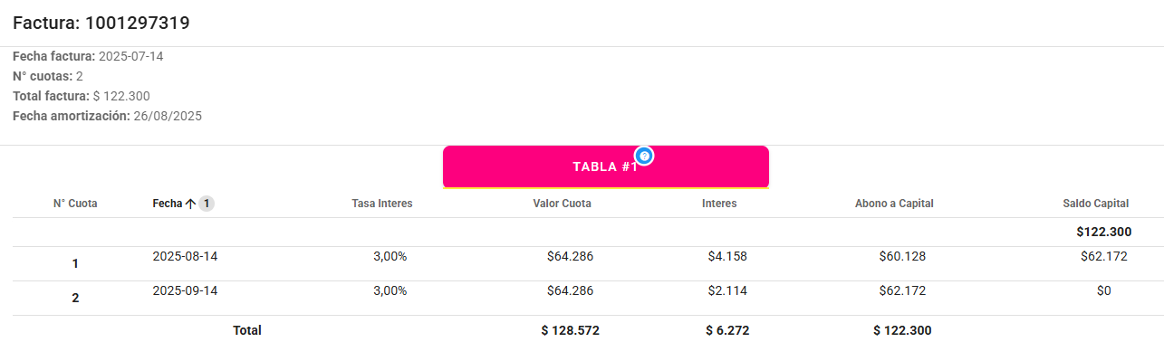 - En esta sección, la plataforma mostrará un desglose con las cuotas diferidas y el estado de cada una ✅.