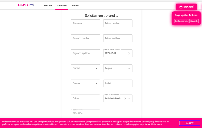 Solicitud de Credipink en línea