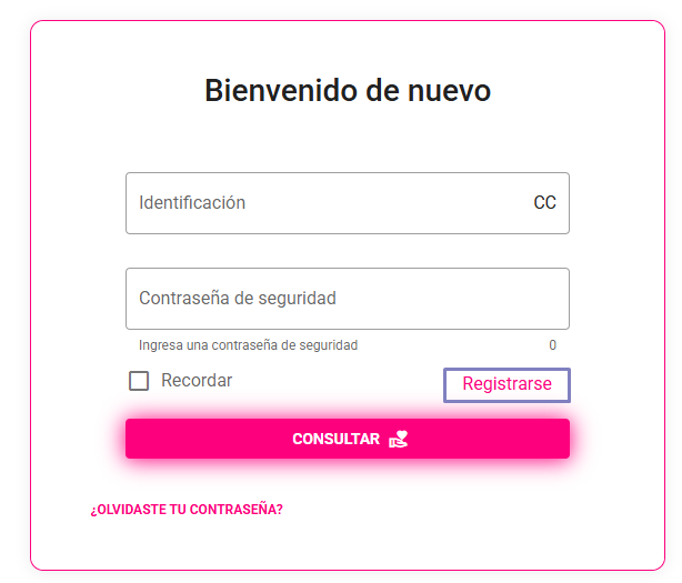 - Diligenciar el número de identificación y la contraseña asignada, luego dar clic en Consultar.